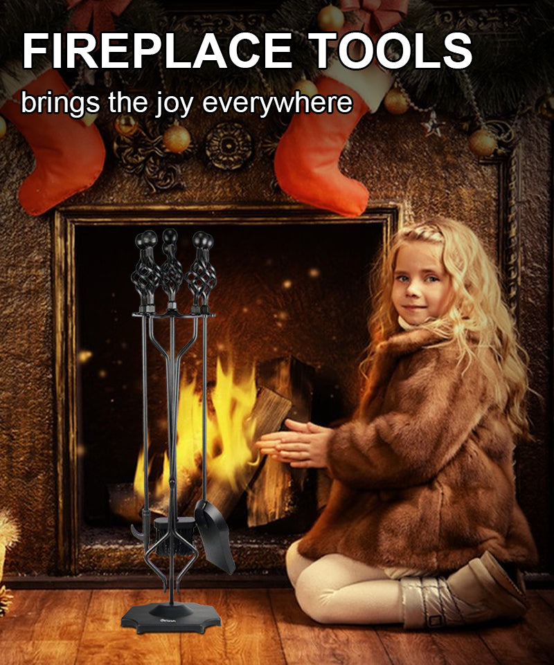 VODA 5-Piece Outdoor Holder Fireplace Accessories Large Fire Kit Fireplace Tools Set