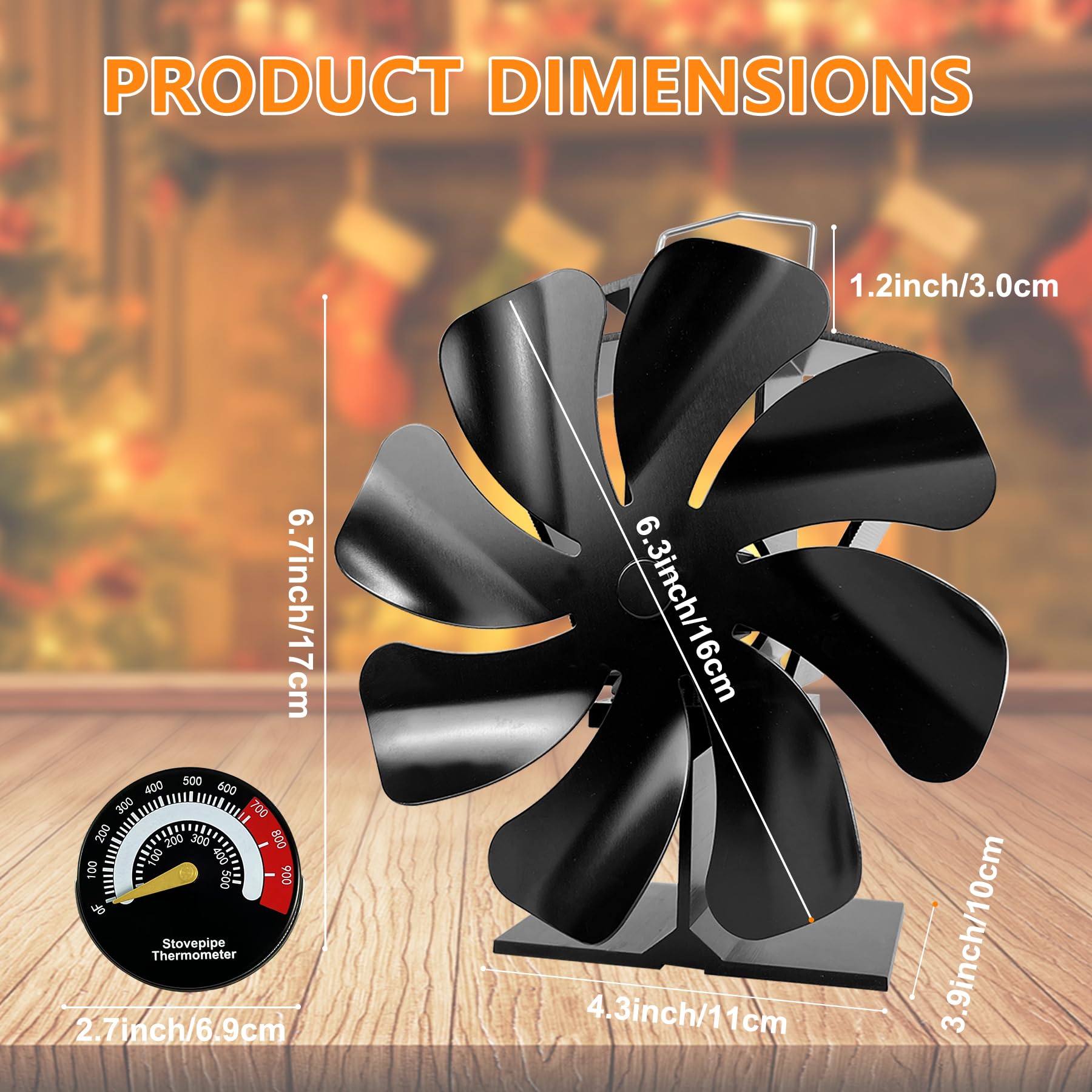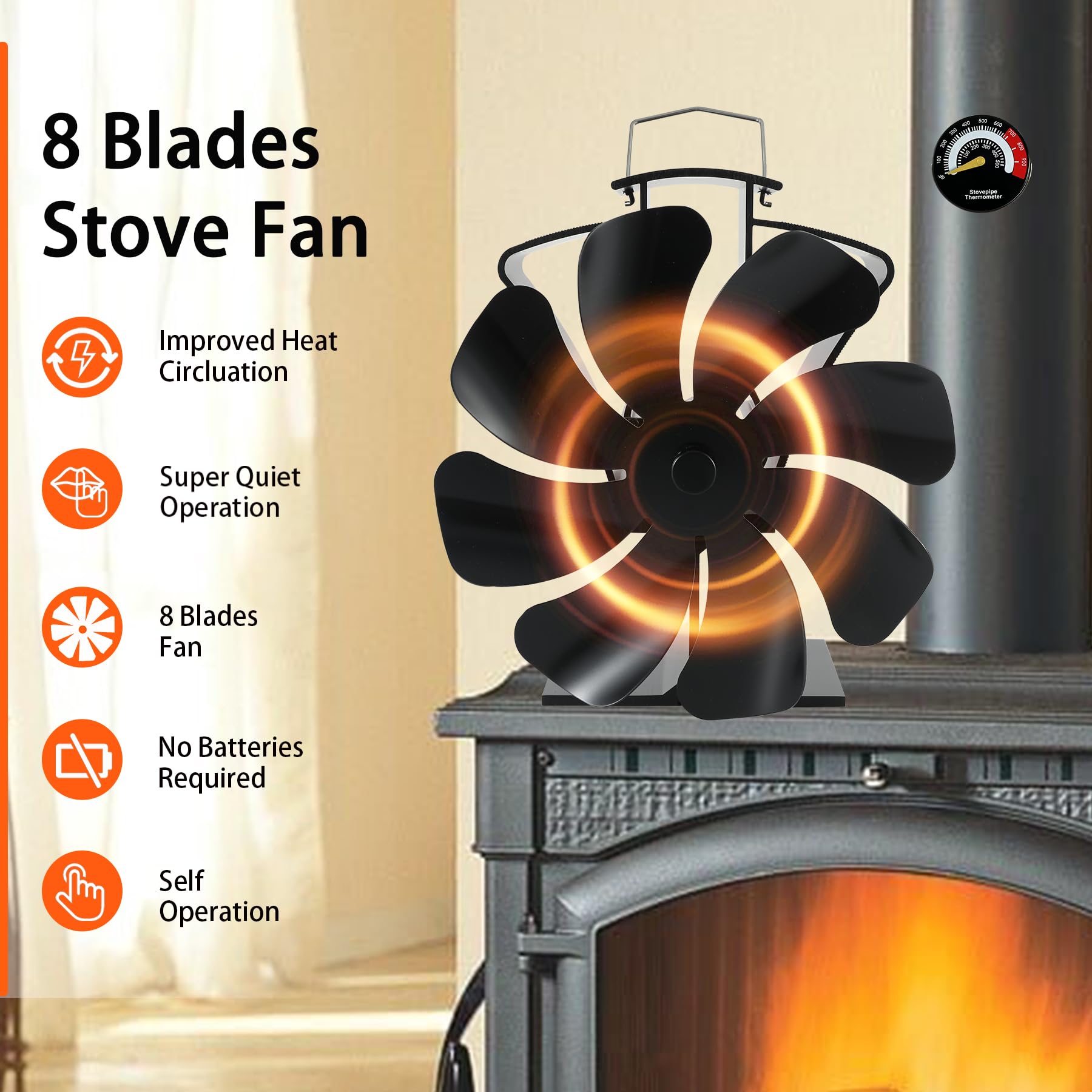 8 Blade Stove Fan Heat Powered Fireplace Fan with Thermometer