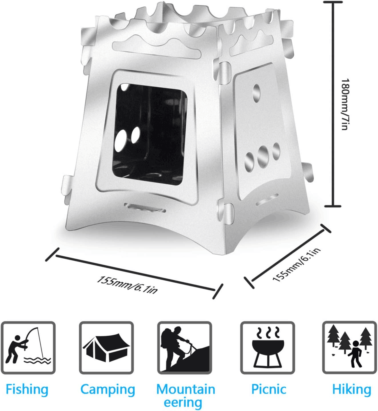 - Made from high quality stainless steel,which makes this camping stove sturdy and durable, perfect for outdoor activities.